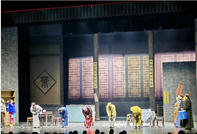 话剧开演了,是老舍的名剧《茶馆》。每个人物都非常生动,每一幕都让人心酸。